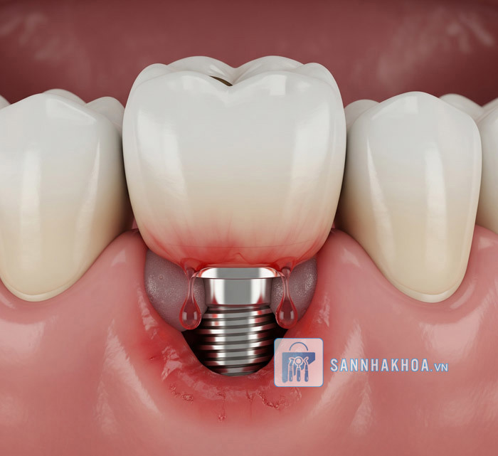Viêm quanh Implant → vệ sinh chuyên sâu, laser, dùng kháng sinh