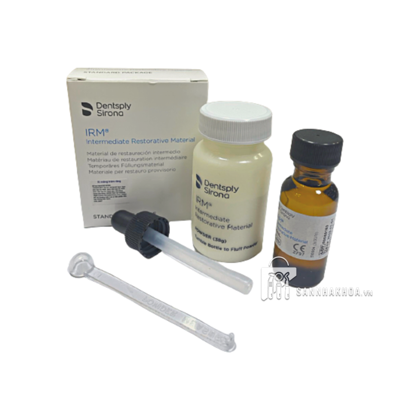 Xi măng trám tạm IRM - Hợp chất kẽm oxit-eugenol tăng cường polymer mang lại hiệu ứng dịu nhẹ cho tủy răng nhạy cảm. Được thiết kế dành cho phục hồi tạm thời và làm lớp lót dưới các loại xi măng không chứa nhựa resin - Dùng cho các phục hình tạm thời với thời gian lưu trữ lên đến 1 năm